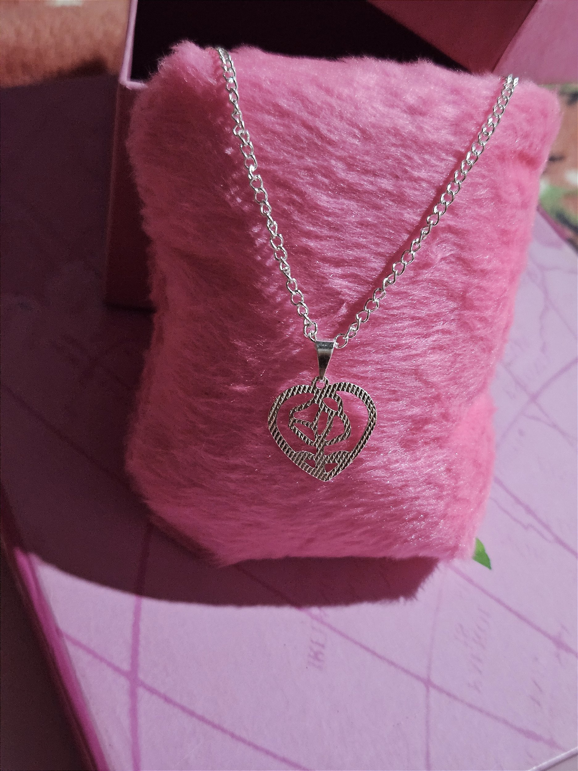 Colar de coração folheado a prata.